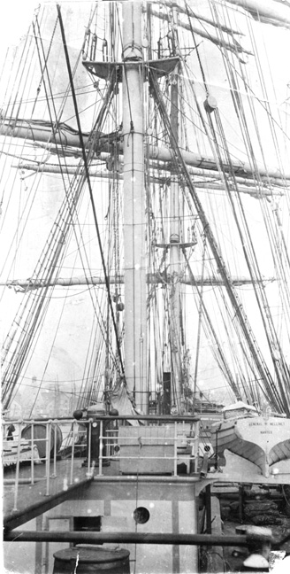 Photo found in a book, 'Stationary Engine Driving' presented to Herbert Dewhurst of 29 Clarence Street, Barnoldswick in 1917. It was second prize for regular attendance from Rainhall Road Wesleyan Sunday School. The name on the lifeboat is 'General Mellinet. Nantes.                                     I tried searching for details because there looks to be a small funnel behind the masts but had no success.