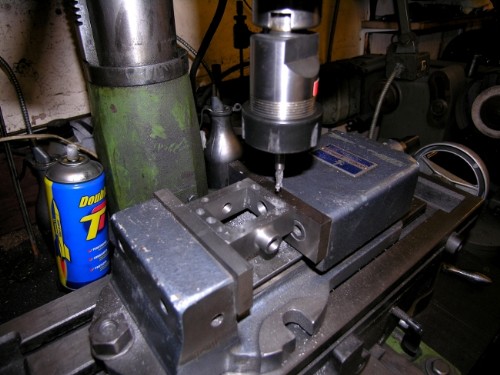 No pics for yesterday's work, repetition of what I did on the first block. 44 tapping holes drilled and 26 of them tapped 2BA. Same process today.