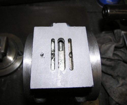 Nice! The block fits the standards with the lids temporarily bolted down with two opposing set screws. Only one problam.... You know I'm always honest and admit my mistakes. Well, when I came to try the LP stud holes out they were wrong! Somehow, despite all my checking I'd reversed the position of the chest when boring the lid. The lid matches the valve face stud holes but the steam chest drillings were wrong, four of them out of position when mounted in the correc t orientation. Several swear words.....