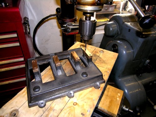 Next job is drilling and tapping stud holes in pedestals. I know you know that you have the right tapping drill size, the right tap and the right threaded rod/studs but no harm drilling one hole, tapping it and trying the stud. Once you're sure you have it right, on you go, only 15 left to do!