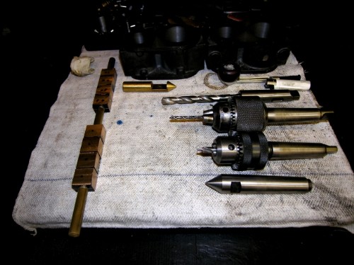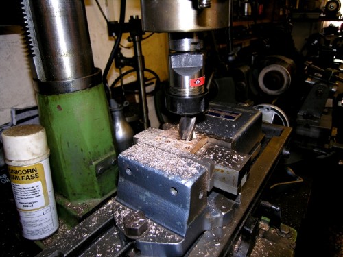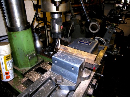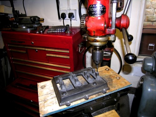 Get set up, sharpen drill and get going. Starter holes are already in place so easy to do but watch out as drill is breaking through with one land into a web. Very easy to have a grab and break the drill in the hole, we don't want that, they are almost impossible to get out without damaging the casting.