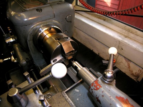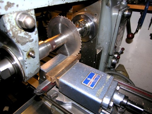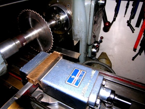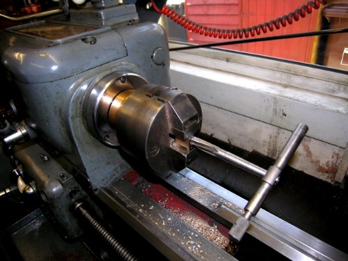 We need the big four jaw off the Harrison lathe and a different chuck for boring the bearings. The reason I did this pic was to remind the beginners that the easiest way to bruise a lathe bed is to drop a heavy chuck on it as it comes off the thread on the nose of the lathe. Put a piece of plywood on the bed. Takes only a second and saves any damage.