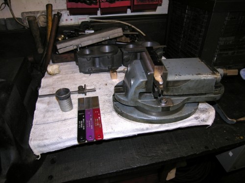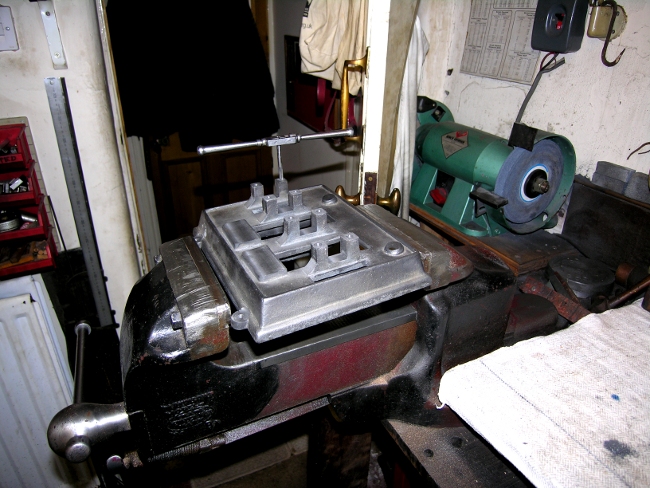 Beds held in the vise for tapping. If you're going to buy a vise get the biggest and best you can afford. This old Parkinson 'Perfect' Vise has 6" jaws and will hold up to 9". Made in Oldham they can still be found secondhand and are just about the best ever made. Worn jaws are no problem, you can easily make new ones. Graham Riley, my MSC manager at Ellenroad had his own engineering firm at one time. They once had a Parkinson vise with a fault so he took it back to the works in Oldham. Old Mr Parkinson took him into the shop and found him a vise to replace it. Graham said that what impressed him was that he had a ruler pocket in the leg of his immaculate three piece business suit!
