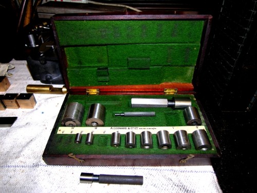 This is a set of standard gauges 3/8" to 1 1/2" in a mahogany box. Spotted in a pile of rubbish in a mill that was under demolition. £1 changed hands. Always keep your eyes open!