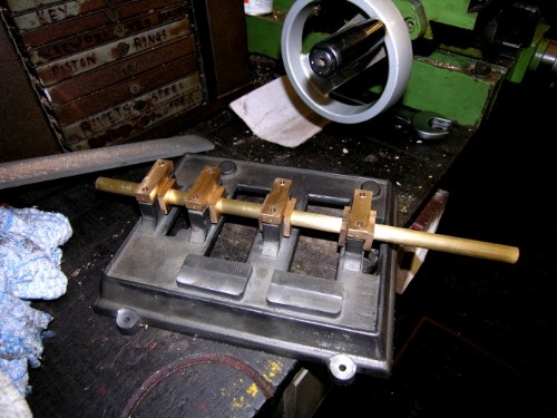 The last check, the 1/2" brass bar slides right through all the bores, they are in line and you can turn it with your fingers. Today's task is to treat the other bed the same.