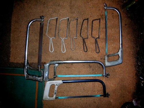 A bloke once asked me why I had so many hacksaws. I had to explain to him that they all had different grades of blade at different stages of wear. 18teeth per inch and 24tpi in the big frames. All Hard HS steel and the newest ones are for brass. No joy cutting brass with old blades because it just lubricates them and they don't cut clean. Always one frame with a machine blade in it for really rough cutting.