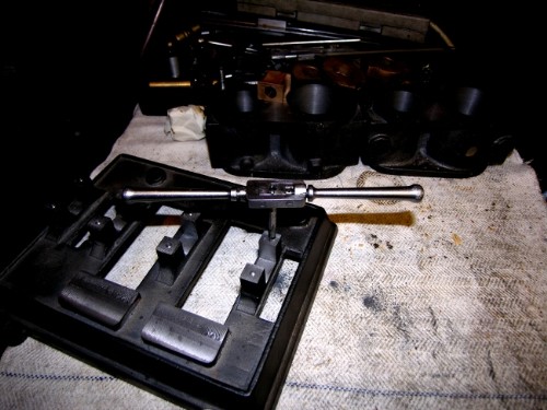 Once they were all milled and seated, I popped a 1/2" reamer through to ensure they were the right size. Remember I bored them a bit strong? They were all slightly too small because during machining the castings distort slightly as the stresses come out.