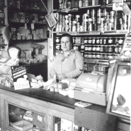 Here's a picture of my mother in the shop at Sough when we were 'open all hours'. You can see the top of the chair for the customers in front of the counter. Those were the days!