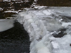 Glass says -7C here but it does not feel as cold to me but very foggy. Waterfall on Pendle Water very spectacular lump of ice.. Nolic