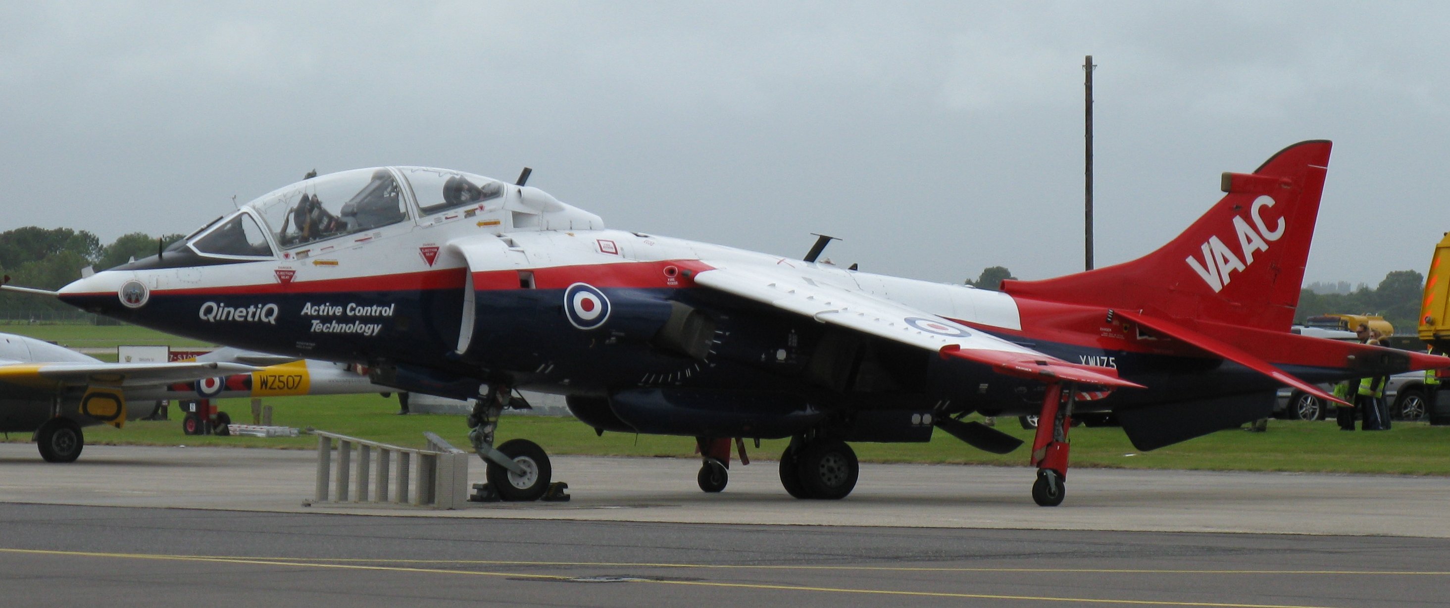 This aircraft is the oldest airworthy twin-seat Harrier flying worldwide and first flew in 1969. It is operated by defence firm Qinetiq and is officially titled the Vectored-Thrust Aircraft Advanced Flight Control (VAAC) Harrier. Having started life as a conventional Harrier it was modified in the 1980s into a flying test vehicle for future vertical take-off technologies and was given fly-by-wire equipment. In 2005 it achieved the first landing on a ship by a Short Take-off Vertical Landing aircraft without pilot input (that was the RNAS brochure description - I would suggest that it had pilot input but that the pilot was not in the aircraft!). The aircraft is soon to retire and it may not be seen at air shows again. (Click pictures for larger photos)