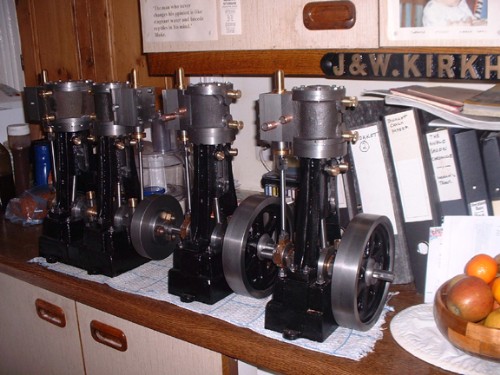 Posted - 20/12/2007 : 16:55 As of 14:00 today, all the engines have flywheels. The small ones are finished now apart from two pipe fittings for steam and exhaust. no rush so I went to bed for an hour....... Got to get my strength up for tomorrow night.