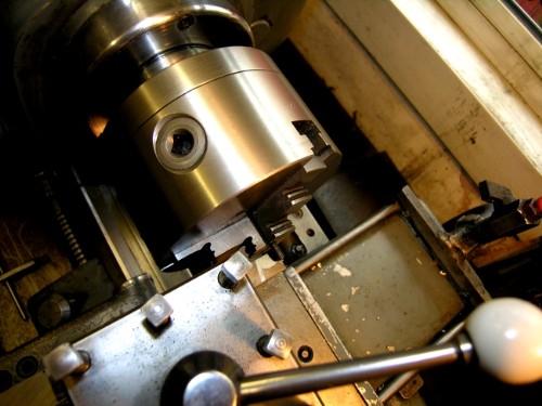 Best way I have found involves the use of the four jaw independent chuck. Big, gets a good hold and always remember that properly set up it's the most accurate chuck you own! You'll see that what I do when I've found my centres, marked them and drilled the biggest centre holes I can get away with. (Newton always said that the bigger the Slocombe drill the better!) I use the dead centre that fits into the mandrel of the lathe to engage the centre in the billet but reinforce this by carefully tightening the four jaw down onto the steel. Once you've set that up carefully you know you've got it by the short and curlies!