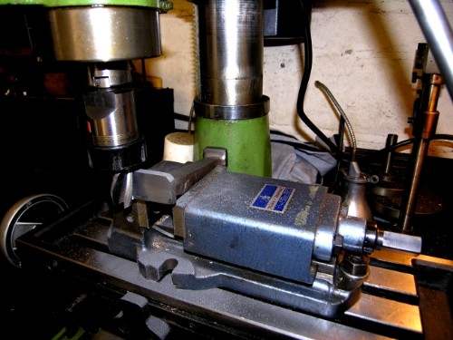 All the sides milled straight. Now for the clever bit! Drill 3/8" holes in the two plugs and bring on the rotary table!