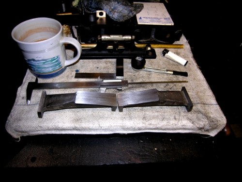 The ground flat tool steel stock was exactly where it should have been, neatly tucked away in the tresure chest. This is unhardened tool steel, tough but it machines cleanly with care.