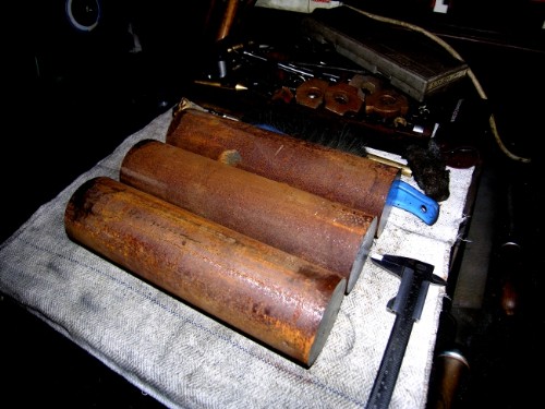 It's nice having friends you can call on. Terry has dropped the 75mm bar in, I asked for three in case I make a mistake! Over the years I have done a lot of work with Terry and I've never been greedy, I reckon that if you're dealing with the right sort of people it all levels itself up in the end. So the billets haven't cost me anything. Wonderful! It's 3/64ths under 3" so I'll lose 3/128ths off the stroke. I don't think the chief engineer will lose too much sleep over that!