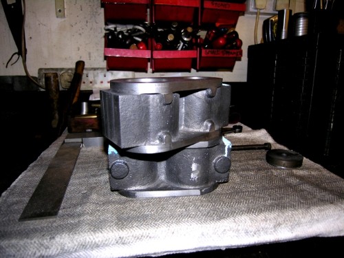 Mot a lot to record in pictures but a lot of careful thought went into the job yesterday. Before I started chopping lumps off the cylinder castings I though I'd better do some basic measuring and compare what the drawings from the ME said and how this transferred to the castings.