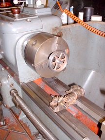 The plan for the chuckback changed when I found a nice gunmetal casting in the treasure chest. We're ready for boring and threading and then I shall reverse it, screw it directly onto the nose of the lathe spindle and turn the face that connects the chuck. That way it will be dead accurate.