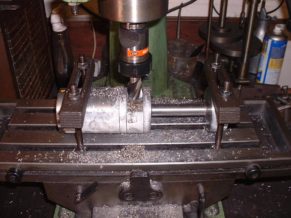 Newton's later way of milling the webs out is much faster and avoids all that uncomfortable turning. It took me an hour to mill the muck out and get the shaft back in the lathe. So that was two hours work in the morning.