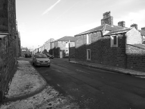 However, I don't think I'll need one because I reckon I've cracked the problem. Just popped round there and took this preliminary shot on my little camera. Hopefully BK will be able to do a proper one soon. Looking at it again, I just need to catch the end house on Chapel Street which is now obscured - but it's 90% correct so far. Just need to drape over the vicious pointy railings a bit more...