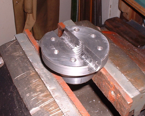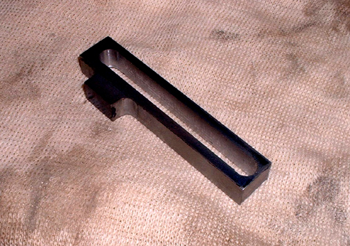 This is the boss after drilling and tapping for the plate, boring 1/2 inch for the lead screw and then milling out the clearance necessary for the lead screw not to connect to the slide.