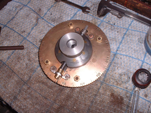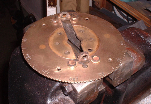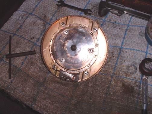 I've been following with interest your rebuilding of the ornamental lathes. Now you've got round to one of the ornamental chucks I've got a couple of questions? You refer to it as an elliptical chuck, but looking at the photos and comparing it with the descriptions of similar chucks in works by Holtzapffel and Walshaw I rather think it's what is known as an eccentric chuck. From your description of it's construction I think I would agree that it was a one off particularly in respect of the two brass discs. The engraved numbers around the circumference puzzle me, why 120, and anticlockwise? The "foundation" plate looks as though it can only be read from the back and one wonders why you would need this facility when you already have the ability for accurate dividing via the head stock mandrel and the tangential gearing? Could the brass plate have been recycled from somewhere else? Possibly something horoligical? The thinking behind this was the early reference to Johnny Pickles work on tower clocks and the thought struck me that a single disk graduated to 120 divisions would be ideal for marking off dials at say 12,24, say for hours, 5,30,60, for minutes. The lead screw at 20 tpi seems a little odd, as far as I understand Holtzapffel standardised his leadscrews at 10 tpi. I would be very interested to hear your comments, As I am in the process of attempting to adapt a lathe of my own design for ornamental work I have followed your "work in progress" with great interest.