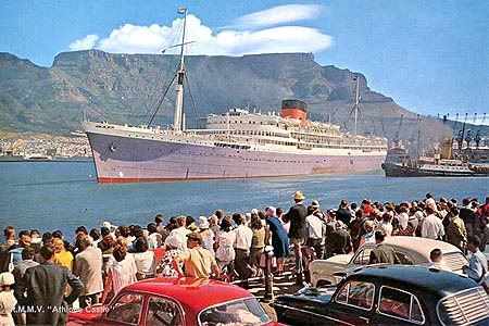 RMS Athlone Castle at Capetown South Africa (circa 1962). These ships were cruising at twenty plus knots when most other shipping companies were happy to be doing 15-16 knots.