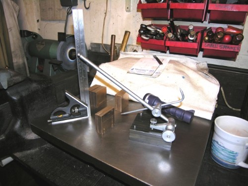 A nice illustration of the advantages of having good tackle. The most accurate and quickest way to mark the blocks is on the surface plate using an accurate square and a scribing block. Dead easy and fast! Incase you're wondering the torch is for spot lighting of the scale to make sure I have the scriber point at the right height. Cataracts are a bugger!