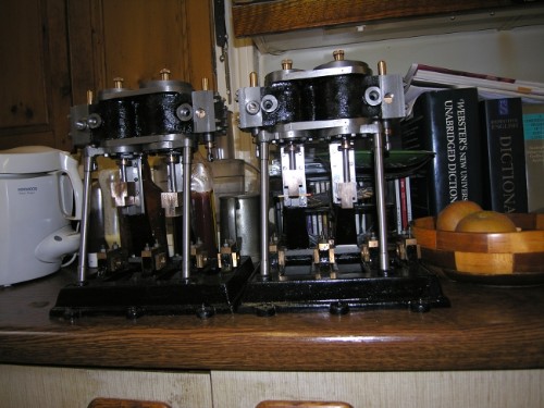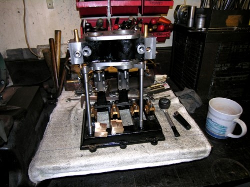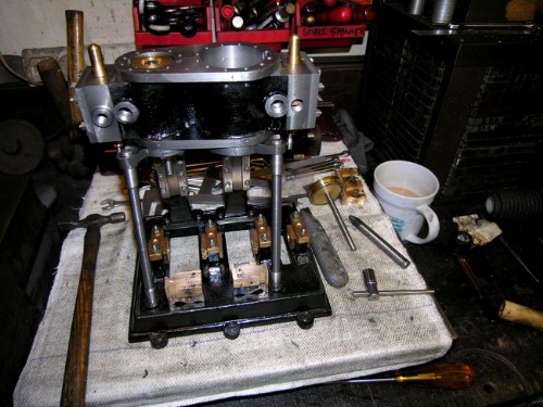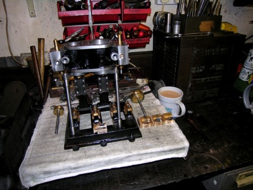 I don't know whether you have noticed but once the crossheads are ready for the piston rods they can be given their finishing polish and fitted permanently. Then the top lids can be finally installed and sealed and the top end of the engines are finished. We will be ready for the bottom end, the crankshafts and motion. All the accounts I have ever found of heavy maintenance on up and downers leads me to believe that there was always a rough division between the top end gang and the bottom. It's only when you build an engine that you realise that the two parts are actually completely separate and demand different skills. I've always said that the best way to get insights into steam engines is to build them and though on a much smaller scale the operations on these engines are exactly what the old fitters would have done. Remember that all these engines were unique, you couldn't take a part off one engine and throw it at another of the same design. That had to wait until mass production came in.