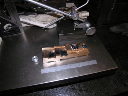 An hour of careful milling and I have all the blocks close to a fit, final adjustments later. Don't worry about the match at the base of the third block along, it's a looser fit and the match is just holding it in place.