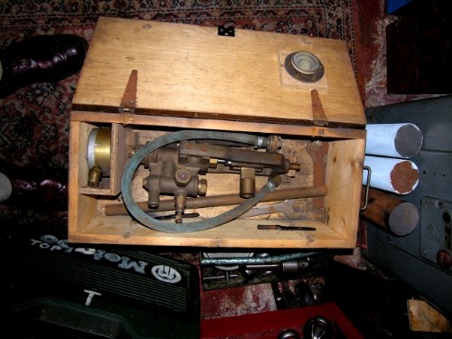 In order to answer my mate's question about the chucks I had to dig in the treasure chests and while I had this box out I did a pic for you just for interest. Brand new, never been used and destined for scrap, what we have here is a triumph of the brassfounder's art, a Vulcan Engineering hydraulic test pump for proof testing boilers. I say a triumph because the gauge with it is a steel tube Bourdon calibrated up to 10.000psi. Working on the usual 50% rule this means that this pump was made for pressures up to at least 5,000psi. Nothing but the best castings and closest work could give you these pressures. Part of a world long gone!