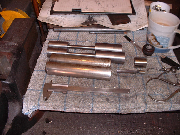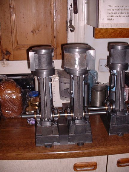 Belle, here's an engine I made twenty years ago. Steam engine that will power a 14ft boat. I had four more sets of castings and so I am building another two like this so that makes three, one apiece for the kids, and the other two are joined together to make a big engine for me. I'm making the con rods today...... but not a lot done as I had a lot of writing to do.