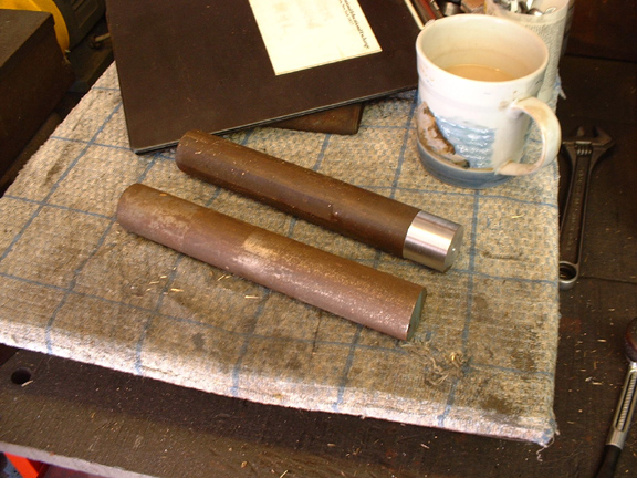 Con rods..... First find any scrap shafting that you can get them out of. I have a length of 1 1/2" bright bar but found these shaft ends as well so I'll start on them first. I love making nice things out of scrap!