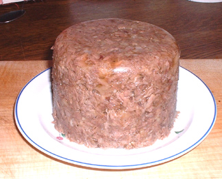 The "Stew" was a concoction of meats, pigs feet or a cow's foot and a touch of gelatine, peppers and salt, that were boiled for ever and ladled into basins to "set".