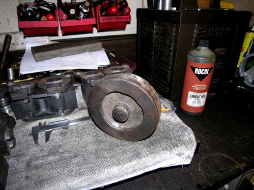 It's a bit too early to go for the morning walk, too dark especially with a black dog so I thought I'd raise a point that has been on my mind. Mr Bahrett's 1922 engine has a flywheel and I have two 5 1/2" flywheel castings in the sets I had cast off Johnny's patterns. However, marine engines didn't have flywheels, they have a fitting on the end of the crankshaft which connects to the propeller shaft, often by a dog coupling which allows some flexibility in the alignment, ships change shape when in a heavy sea. However, some mill engines were marine type compounds and in that case had a flywheel because it was important for textile machinery to iron out the inherent cyclical variation in speed induced by four power strokes per revolution.