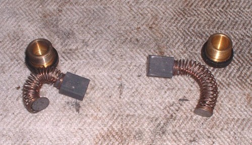 Brushes cleaned up and inserted. Next job to make a safe and secure connection to the motor without damaging the original socket because I have sent an SOS to the States to get my mate to find me one so I can use it for authenticity. However, we can't wait for that so here's what I did.