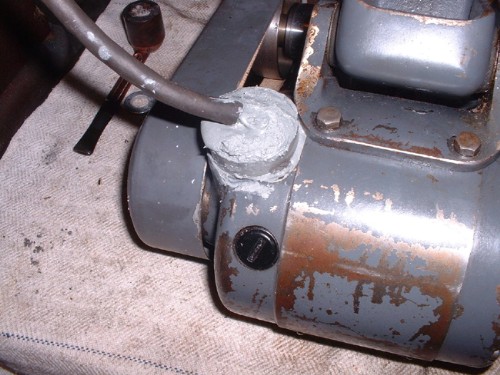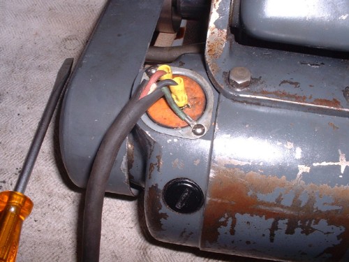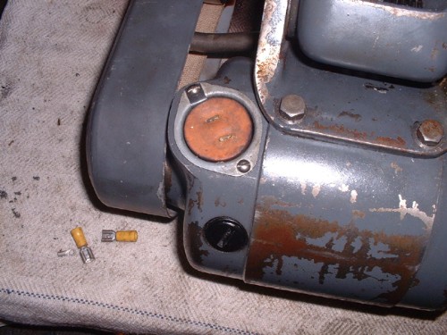 Once all the mechanicals were set up all that is left is the electrics. I took the brushes out to inspect them and here they are, just about brand new, lots of work left in them. More evidence that the unit has seen no work. So a bit of fiddling in the sparks department to get a connection from an American powerplug to a standard 110V connector for the transformer. I think Imentioned before, the motor is 1/2HP universal type for DC and AC up to 60 cycles at 115V. The 110V supply from the transformer will run it OK.