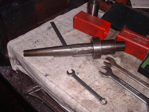 I had mail about the grinder and one of the questions was 'What will you use it for?' A good question and of course there is no answer to it. I won't know until it is needed. A bit like any other machine, it sits there until there is a call for it and I suspect to TP grinder will sit for longer than most but that isn't really the point as far as I'm concerned. Like the 1950 lathe it was neglected and useless until it was breathed on and I get a lot of satisfaction out of bringing stuff like this back to life and learning new techniques. I have one use for it right away. I have two expanding mandrels in the cupboard under the lathe which have always sat there totally useless as the gripping surfaces aren't true and they are too long to go into the T&C grinder without making a new set-up and even then I doubt if the traverse is long enough to grind them in one pass. It will be a doddle to true them up in the lathe and on automatic traverse as well. Luxury grinding! One thing I have always shied away from is grinding in the lathe because of the dust but I suspect that with the very fine cuts which are possible with the lathe that the dust will be minimal and a strategically place cloth will shield the bed.