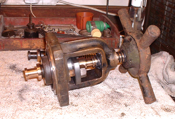 The finished valve head re-assembled, packed and ready for fitting on the feed valve body on the boiler. It's a perfect job and ready now for another 100 years service. Very satisfying, now I can get back to my flywheel!