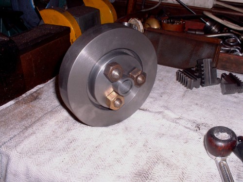 Something different than shiny tiddly bits today, a bit of real man's turning for a change. I decided to make the drive coupling for the big engine. It doesn't need a flywheel of course being a compound but a bit more weight in the drive smooths it out a bit and I needed something to get a drive off anyway. I just happened to have some spare flywheel castings from another engine. Here we are starting to get some shape into it.
