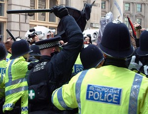 This Image of a POLICE MEDIC about cosh someone , from G20 landed on my facebook page today..... I have no reason to think that it is "constructed"..