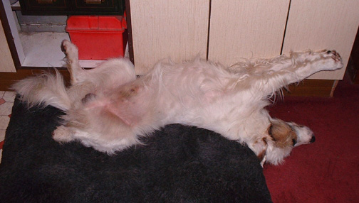 Alright, it's another boring pic of Jack. This was last night as I was going to bed, he was hard and fast asleep. A secure dog I reckon, not bad considering he was beaten up for 18 months......