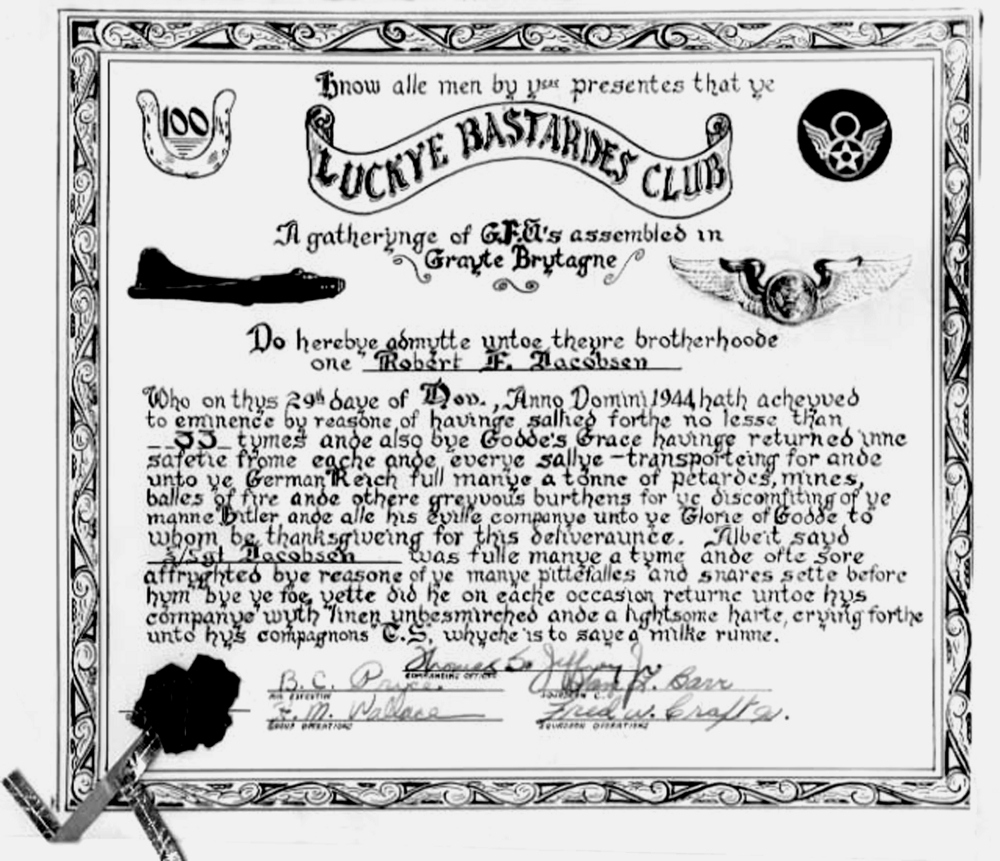 You're right Ian on both counts. When my American students complained because I was working them too hard I used to tell them to go down to Bob's shop in Northfield and ask him what he was doing when he was their age. They were astounded when I told them. I never got the full story of why he did so many, I have an idea that it was something to do with the big losses the 100th Bomber Group were experiencing. They kept the experienced crews on and I have the certificate that his mates gave him after 33 missions. I'll post it for you.