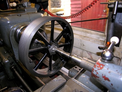 First job was a bit of a nag I have had. I made this flywheel just for the challenge and I knew it was nowhere near true on the shaft so I spent half an hour on it this morning and made it better but still not good enough. A lot harder then it looks so I've put it back in the front room.