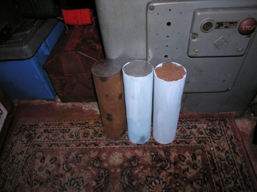 Stock was on my mind so I took ten minutes to give the shaft blanks a coat of layout fluid ready for marking up. We are very close to crankshaft turning and it's a job out of the way. Notice I have a spare in case I cock up!