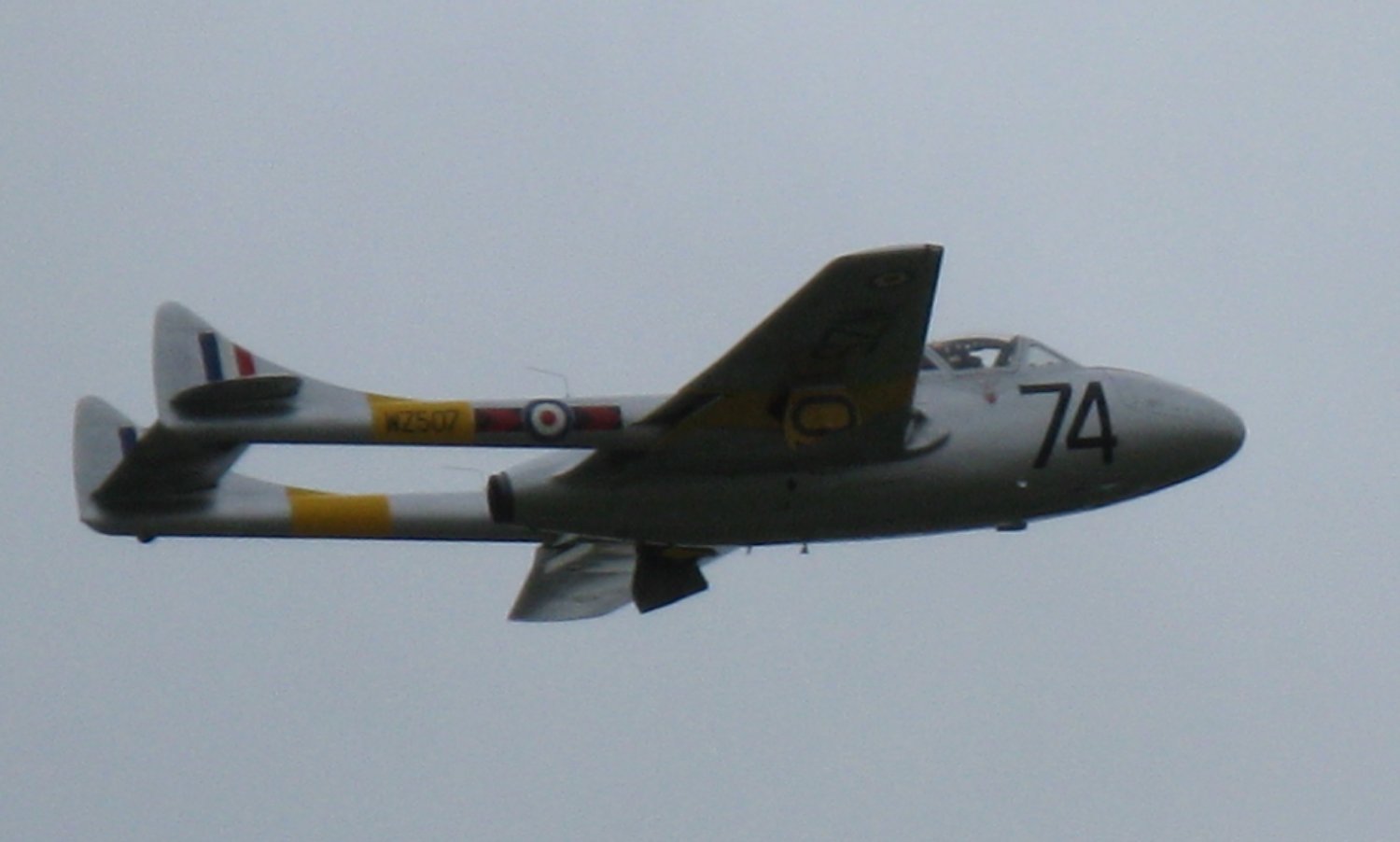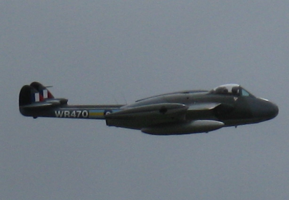 Sea Vampire twin-boom fighter which operated from aircraft carriers and was flying at the air display. (Click picture for larger version.)