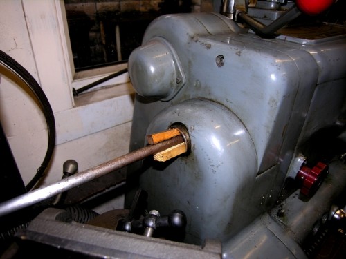 Funny pic to start with but first job this morning was to find a bar of 1/2" MS. One of the problems when running with a long bar through the mandrel is it wags about. A couple of wooden wedges can cure it.