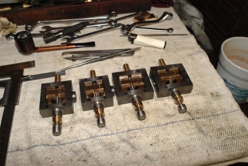 All the slots cut and the drivers fitted to the valves, always a bit of burring to get rid of. See what I mean about the Newton method of valve driving? A lot of work but a very good way of achieving the object and of course they can be adjusted without dismantling the valve.