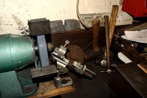 Another fuuny.There are many advantages in having a small workshop, everything is to hand. However it means that the box that you need to get into is always the bottom one in the pile so you have to get them all out. I needed to get into my packing sotore box for the next procedure on the valves and here is part of the result. I opened the other box to show you the Dumore grinder that I converted to fit the Harrison lathe. It's American and 110v so I have to run it off a transformer but when you need it it's a brillian tool. This is why things like mylathe centres are so perfect! Enough, what I was after was the graphite and grease packed asbestos string. That's right, asbestos. No danger at all in this form but I bet it's illegal now! Still the best packing....