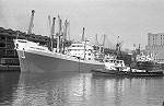 The City of Lancaster, berthed at No9 Dock Trafford Park (Salford Docks) in 1970. Note the funnel, the top half is removed at Eastham Locks, so that the ship can navigate under the bridges on the Manchester Ship Canal.