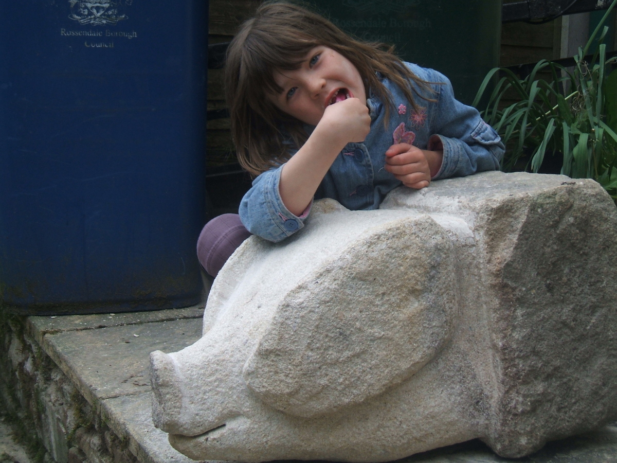 thanks for the praise stanley the pigs head is at my house going through a greening process which is milk and green food dye, it was made last year and now its a different item will photo graph it and try and get it on at present i am tidying garden and installing a pond and then its back to making stone troughs bird baths sundails etc and in my shed there is a part carved stack ive made ladders ready and bought a small gin pulley and some 1 mm model rope show it off when finished,